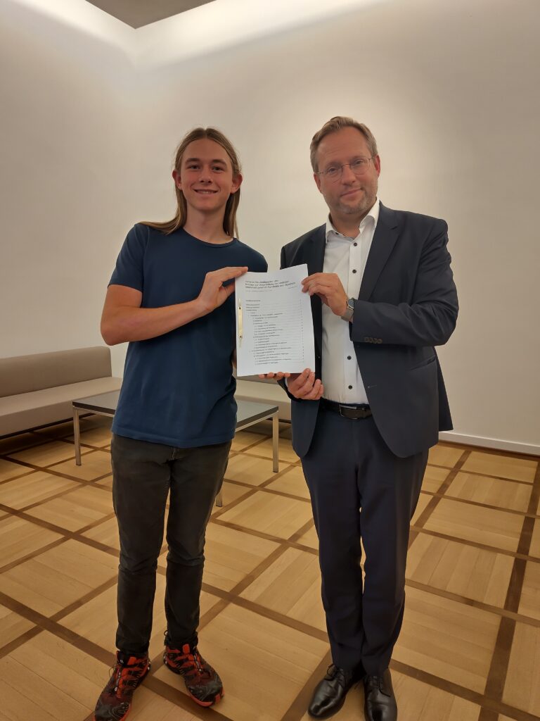 Außerdem erhielt Silas Grünberg von Oberbürgermeister Martin Ansbacher einen Sonderpreis und eine spezielle Danksagung für sein Engagement in der Kommunalpolitik.