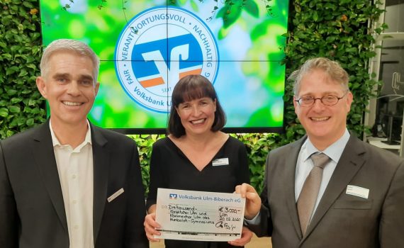 Der Junge Kammerchor und der Konzertchor des Humboldt-Gymnasiums unter der Leitung von Guido Bauer erhält von der Volksbank-Stiftung Ulm-Biberach eine Förderung von 3000 Euro. Das Geld soll für ein Beleuchtungssystem für den Chor genutzt werden.