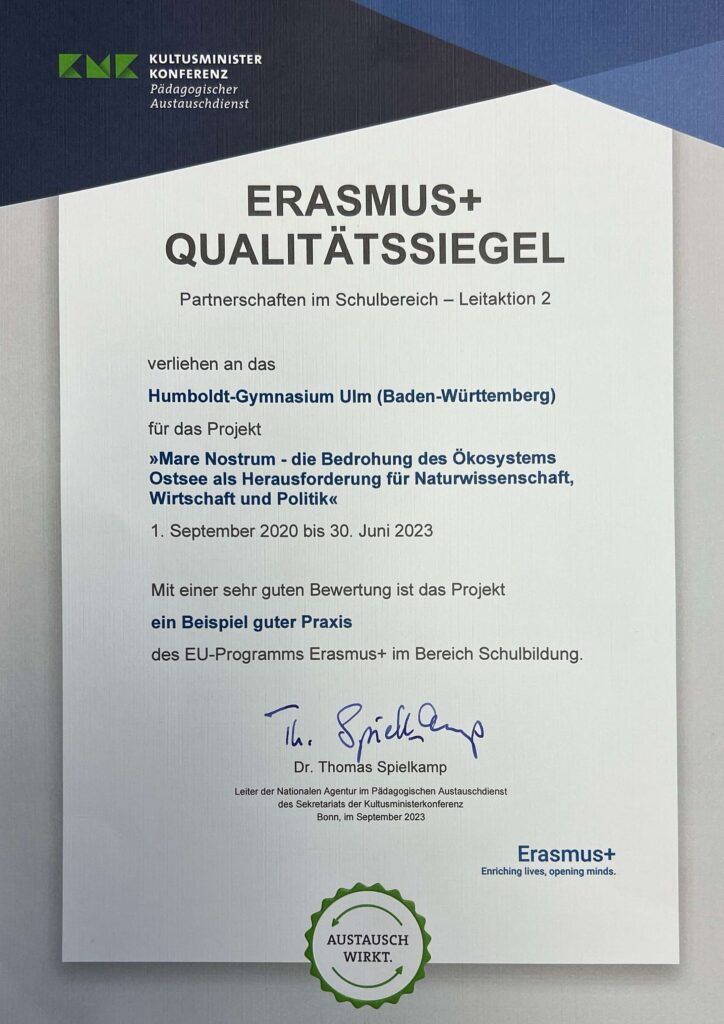 Hier geht’s zum Kurzbericht über die Auszeichnung mit dem Qualitätssiegel: https://humboldt-ulm.de/erasmus-qualitaetssiegel-2023/