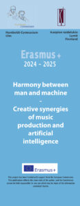 Die Auseinandersetzung mit sinnvollen Einsatzmöglichkeiten Künstlicher Intelligenz im Schulunterricht stellt derzeit eine große Herausforderung in der Schulentwicklung weit über das Humboldt-Gymnasium Ulm hinaus dar. Unser Erasmus+-Projekt 2024/2025 „Harmonie zwischen Mensch und Maschine: Kreative Synergien Musikproduktion und Künstliche Intelligenz“ ging erste Schritte, um dieser Herausforderung zu begegnen und exemplarisch im Fach Musik Künstliche Intelligenz bei der Produktion von Popsongs einzusetzen. Dabei arbeiteten unsere Musiklehrkräfte, Andreas Mayer und Jochen Schmid, mit Frau Bader und Frau Dördelmann aus der Medienbildung interdisziplinär zusammen und nutzten durch die binationale Zusammenarbeit die Kompetenzen der Partnerschule in Kuopio, Finnland, die eine hervorragende digitale Ausstattung besitzt und diesen Weg schon früher beschritten hatte. Zudem wurden die Ergebnisse des Projektes zum Einsatz von KI im Unterricht auf der Metaebene reflektiert und sollten auch für die Schulentwicklung in anderen Fächern nutzbar gemacht werden. Organisiert und koordiniert wurde das Erasmus+-Projekt von Frau Bacher-Martin, unterstützt von Frau Stauss.
