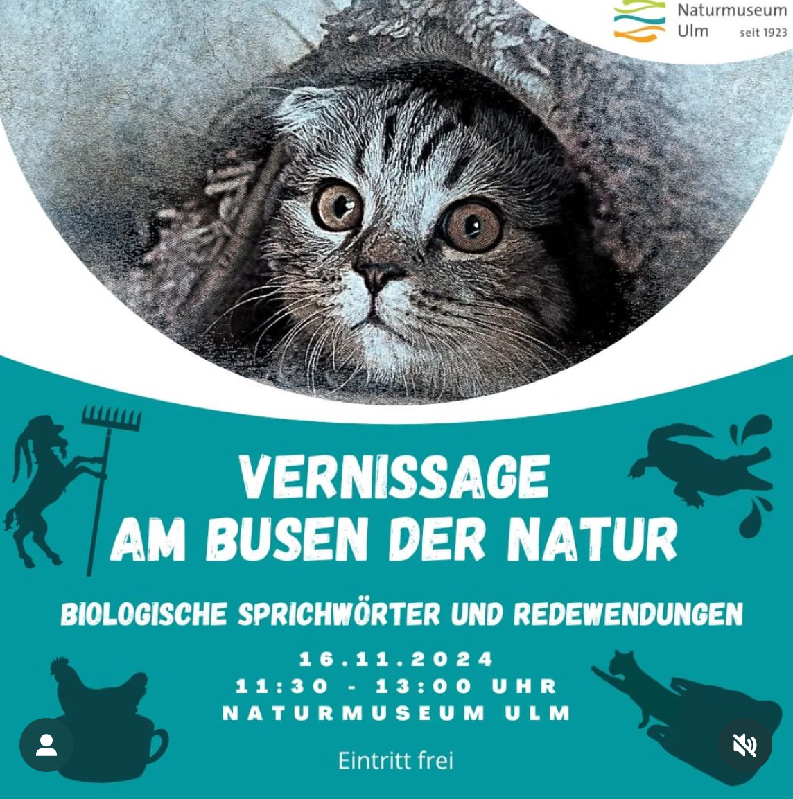 Am 16.11.24 wurde am Naturmuseum Ulm die neue Ausstellung zu biologischen Sprichwörtern und Redewendungen eröffnet. Im Rahmen unserer Schulkooperation haben unsere beiden Kollegen Lena Stauß und Christian Deutsch die Eröffnungsrede zum Thema „Herkunft und Evolution von Sprichwörtern, Redewendungen und geflügelten Wörtern“ bei der Vernissage mit dem Titel „Am Busen der Natur“ gehalten. Frau Boguski wurde im Rahmen der Ausstellung buchstäblich ein Bär aufgebunden 🙂