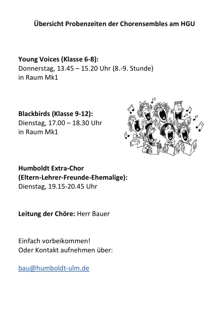 Unsere Chöre werden neu aufgestellt und haben zum Teil neue Probenzeiten: